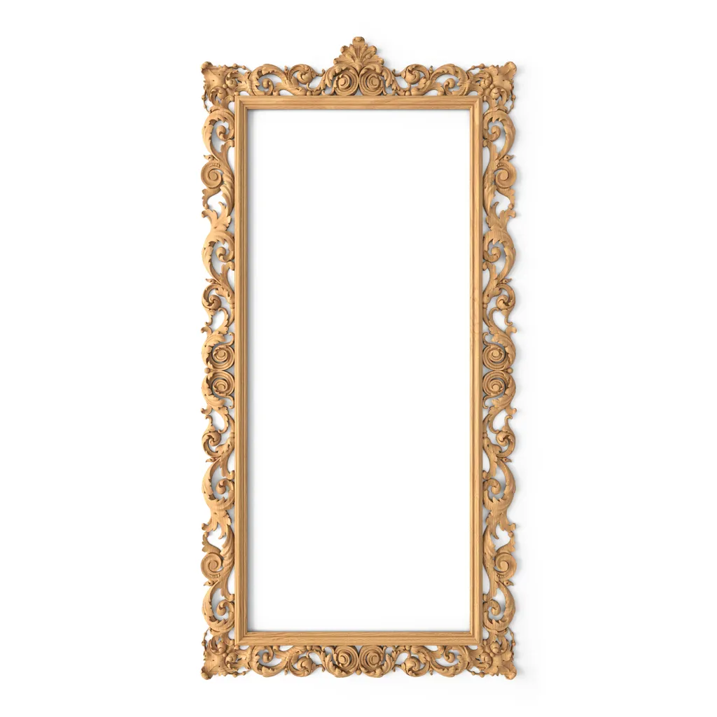 The carved frame RM-015-1 not only decorates mirrors or paintings but also draws attention to the frame itself. Its intricate and delicate patterns, combined with a perfectly polished surface, reflect light, creating a play of shadows and highlights that captivates the gaze and evokes admiration.