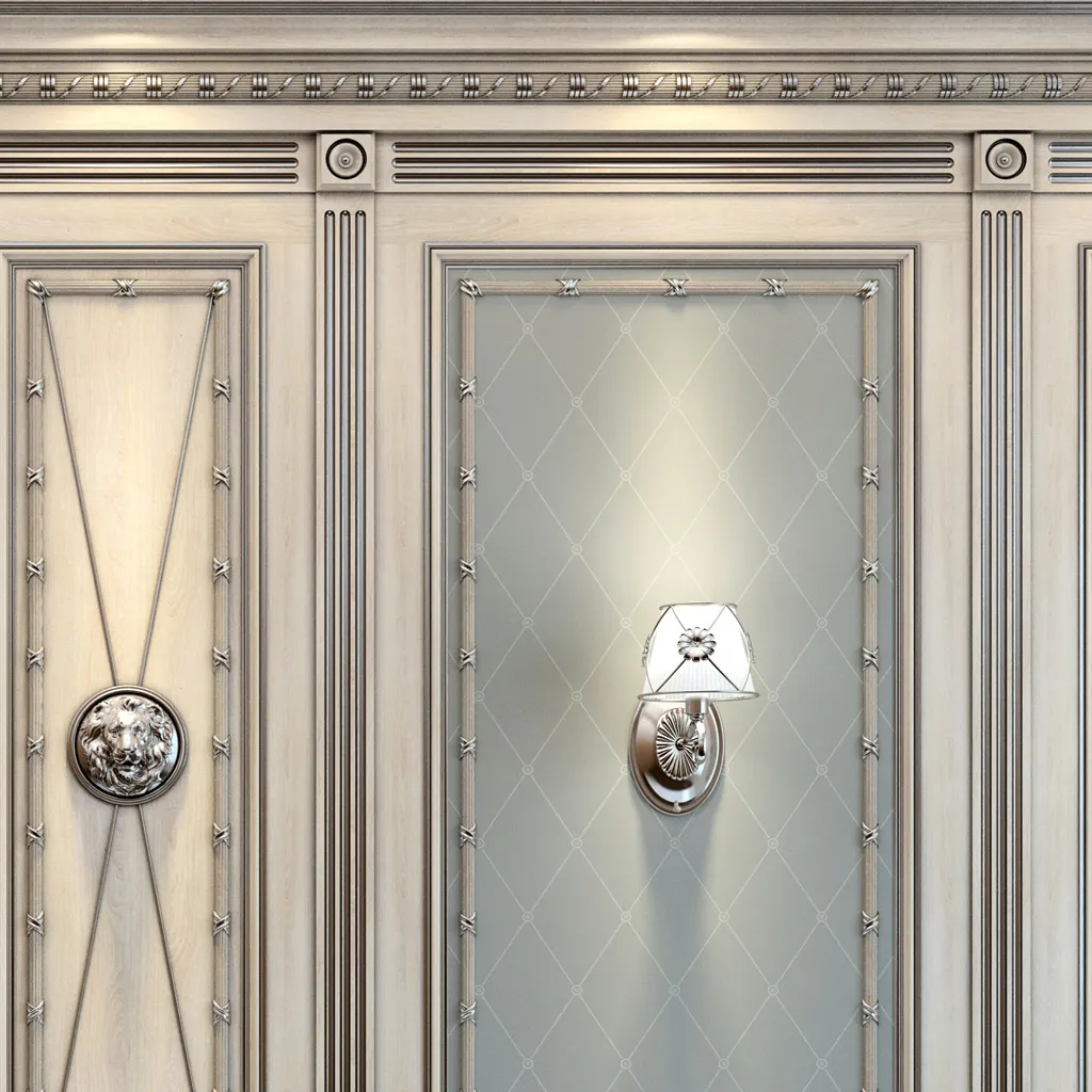 versatile in application: it can be used to decorate doors, moldings, pilasters, as well as part of furniture design — from writing desks to fireplace surrounds and beds. Its minimalist geometric design makes it an ideal accent for interiors designed in minimalist or more ornate styles.
