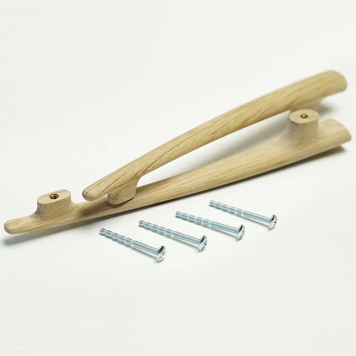 Premium craftsmanship. furniture handle The wooden Bow HL-004 is made from high-quality wood of two types: oak and beech. Oak is a hard and durable wood, distinguished by high wear resistance and longevity. Beech is a light and flexible wood with a smooth and even surface. Both types of wood have a beautiful texture and natural color, enhanced by special processing and coating. The wooden furniture handle Bow HL-004 is attached to furniture using reliable metal elements that ensure stability and safety.