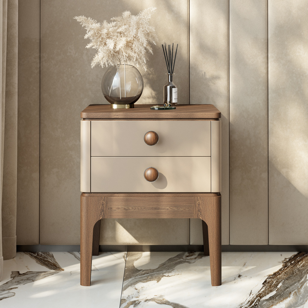 The Alcor HL-066M handle features an unparalleled rounded shape, making it elegant and visually soft. The use of carefully selected solid wood imparts a natural texture unique to each piece. This highlights the individuality and originality of the furniture on which the handle is installed. The wood is treated with special attention to detail to preserve its natural beauty. The metal base adds strength and serves as a stylish contrast to the warm tones of the wood, emphasizing the modern accent of the handle. The handle with coating protects the surface from external influences such as moisture and dust, ensuring durability and ease of maintenance.