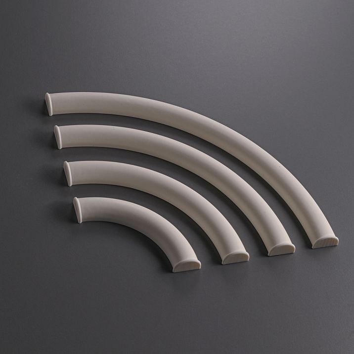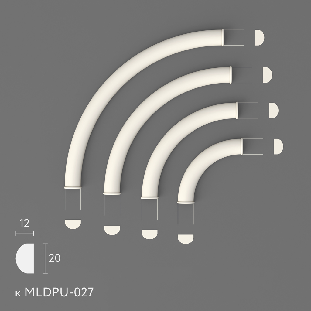 polyurethane moldingsMLDPU-027U-1 is an elegant decorative element in the form of an arched segment with semicircular ends. This element, shown in the image, demonstrates smooth lines and flawless geometry characteristic of high-quality polyurethane products.