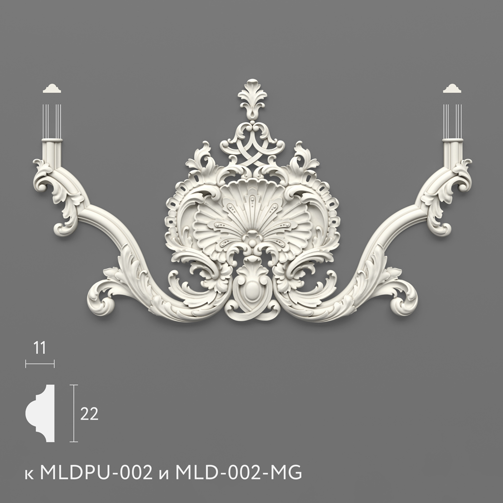 NPU-412 overlay is an exquisite polyurethane decorative elementdesigned to easily and quickly transform the appearance of any furniture. Thanks to its dimensions of 530x295x18 mm, it can be easily mounted on various surfaces such as cabinets, chests, doors, and panels, giving them a unique and expressive look.
