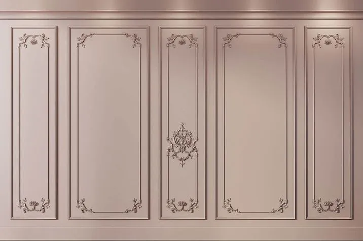 Комплект CPU-8-3 — это максимальный по ширине комплект серии в формате 800 × 2300 мм, открывающий принципиально новый архитектурный масштаб всей коллекции. Переход с 430 мм на 800 мм — почти удвоение ширины — меняет архитектурную логику системы: узкая «полоса» превращается в полноформатную «секцию», сопоставимую по масштабу с широкими версальскими панелями и способную самостоятельно создавать тотальное декоративное убранство стены. В широком поле 800 мм природные орнаментальные декоры коллекции получают достаточное горизонтальное пространство для группировки: элементы располагаются не в единственном вертикальном ряду, а создают горизонтальные группы — «ботанические сцены» с центральными и боковыми декоративными персонажами, пространственными отношениями между ними и ощущением живого природного пространства внутри рамочного контура. Максимальный рельеф 13 мм, специально выверенный для широкого формата, создаёт деликатную, живописную пластику, оптимальную для восприятия с расстояния трёх-пяти метров и идеально адаптированную для боковой архитектурной подсветки. CPU-8-3 является решением для главных стен гостиных, торжественных холлов, ресторанных залов, гостиничных коридоров и любых пространств, где требуется тотальное природное декоративное убранство в широком формате.