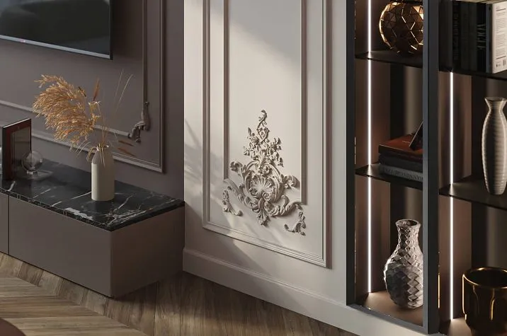 Первый шаг — определение уровня декоративной насыщенности. Насколько богатым должно быть убранство? Тотальная буазери всех стен или акцентная стена? Широкие панели с максимальным орнаментом или лаконичные средние форматы? Ответ на этот вопрос определяет выбор комплектов серии CPU-5 и их форматов.