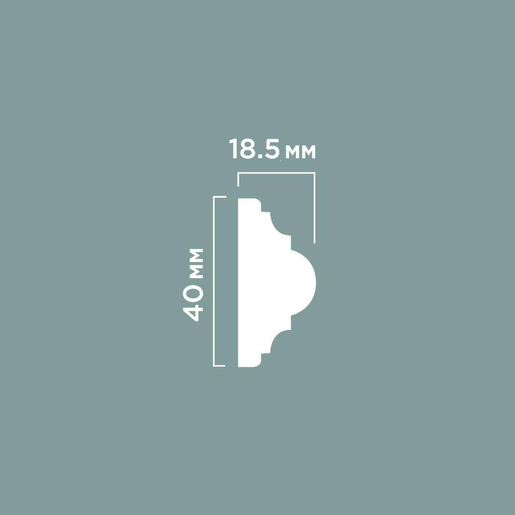 Model D40V1 is a profile of classic shape with a multi-step relief, creating an elegant play of light and shadow on the wall. The dimensions of the item are 40 mm in height, 18.5 mm in thickness, with a standard length of 2000 mm. The material used is high-density polystyrene (durable polymer) — a high-strength thermoplastic polymer that surpasses European analogs in quality and durability. The weight of one profile is approximately 0.3–0.4 kg, ensuring easy installation and minimal load on walls. The item is supplied in white and is intended for painting with any water-based paints.