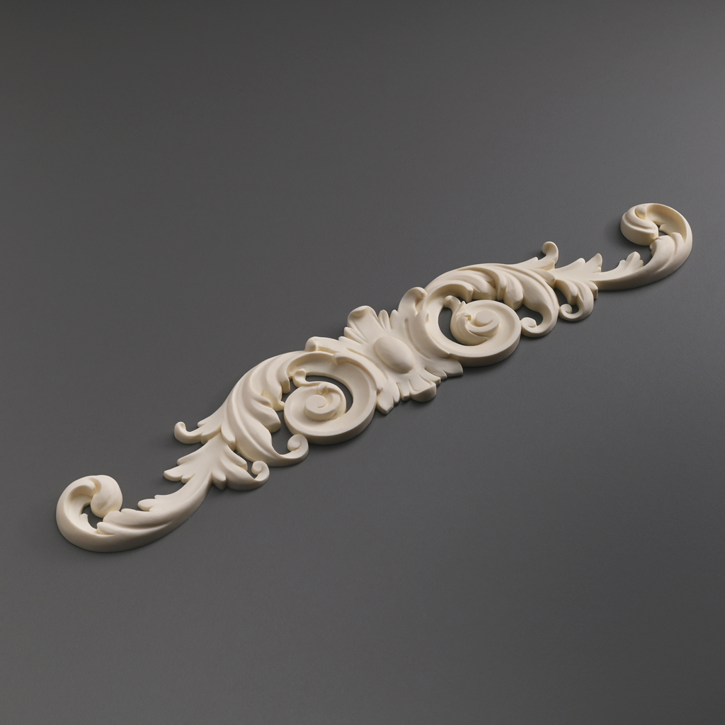 Carved Insert NPU-092 — a universal element for decorating furniture made of strong and moisture-resistant polyurethane. Thanks to its high detail and clear carving, this decorative element will add elegance to cabinet fronts, chests, doors, and other furniture surfaces. The material is resistant to deformation and temperature fluctuations, easy to install and maintain, and readily accepts painting. The overlay allows creating stylish accents, refreshing the interior without significant expenses, suitable for both classic and modern solutions.
