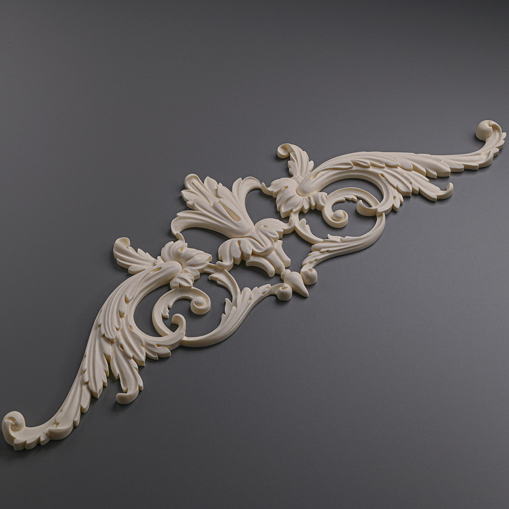 This decoration is often used to give individuality to interior doors or facades of cabinets, chests, and display cases. Its light weight and small thickness allow it to be placed even on relatively thin surfaces. -