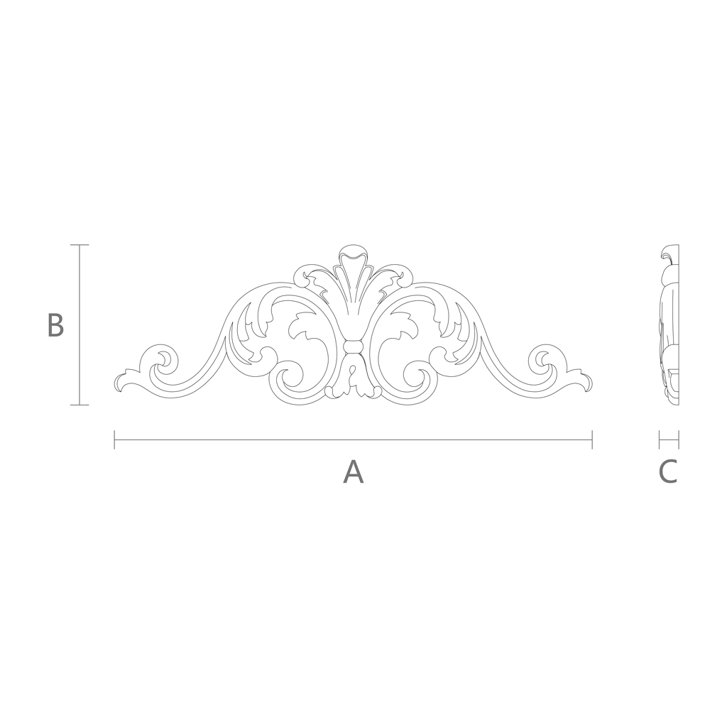 Carved Insert NPU-205 is an aesthetically appealing decorative element for building facades, made of polyurethane. Its main purpose is to enhance and decorate the exterior appearance of buildings, parts of furniture, or doors. With carved inserts, you can add individuality to any surface, introducing a touch of luxury and elegance.