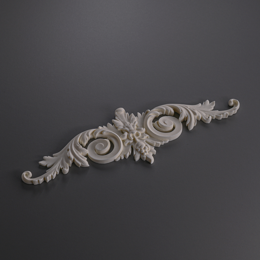Polyurethane relief decoration NPU-250 is a carved overlay with high detail and pattern accuracy. Made from durable and lightweight polyurethane resistant to moisture and mechanical impacts. Thanks to universal dimensions and simple installation, the overlay is suitable for updating furniture, doors, walls, and facades. This decoration adds expressiveness to the interior, emphasizing style and creating a 3D relief effect. Ideal for classic and modern projects, as well as commercial spaces.