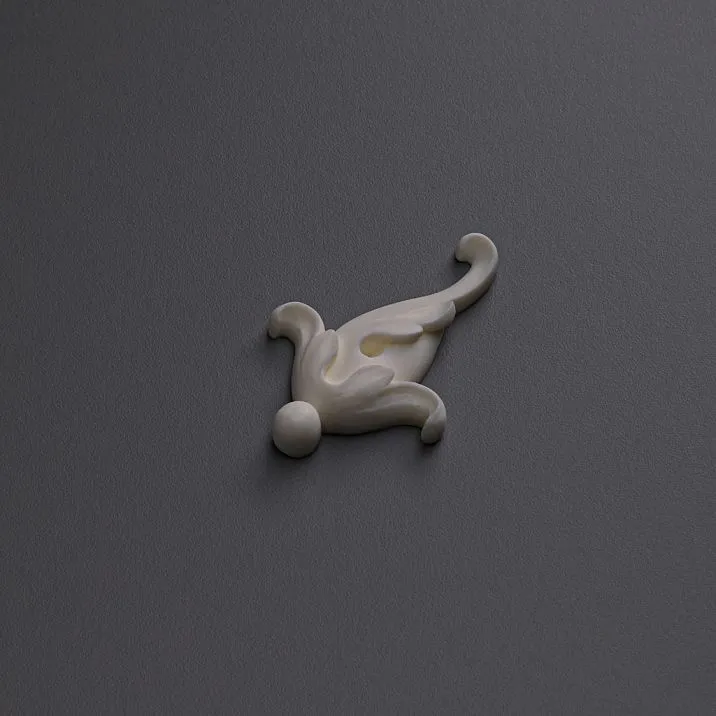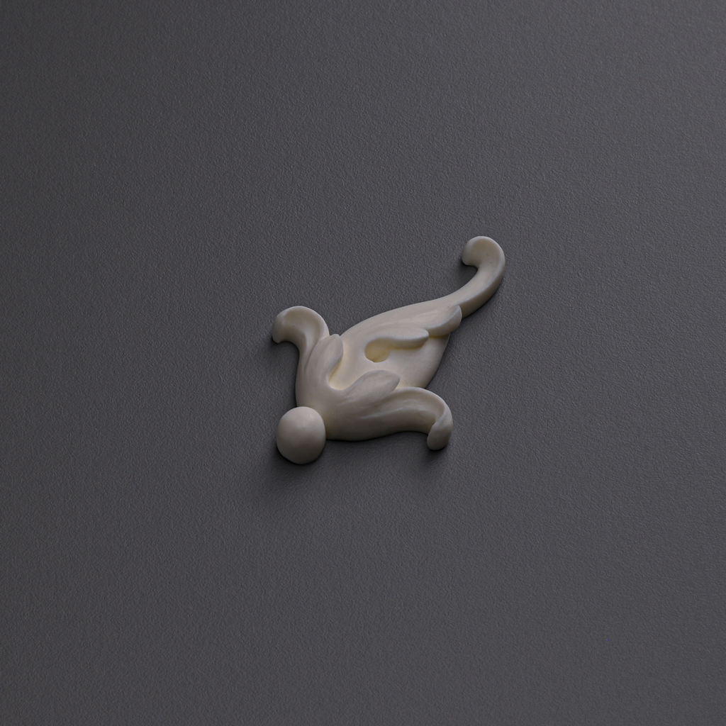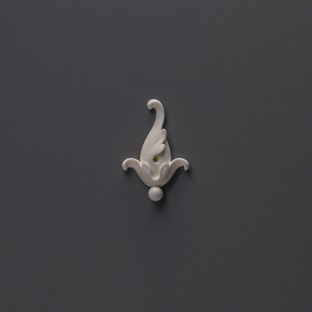NPU-307 Molded Decoration has a vertical orientation, where the upper part resembles a rounded swirl, and the lower part — an opening flower or bowl from which a smooth leaf 'grows'. A small ball at the very bottom completes the composition, emphasizing its harmony. -