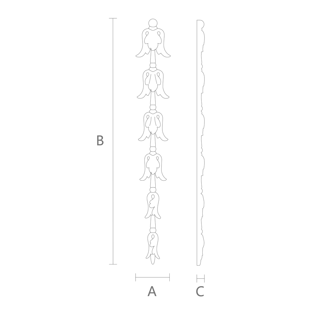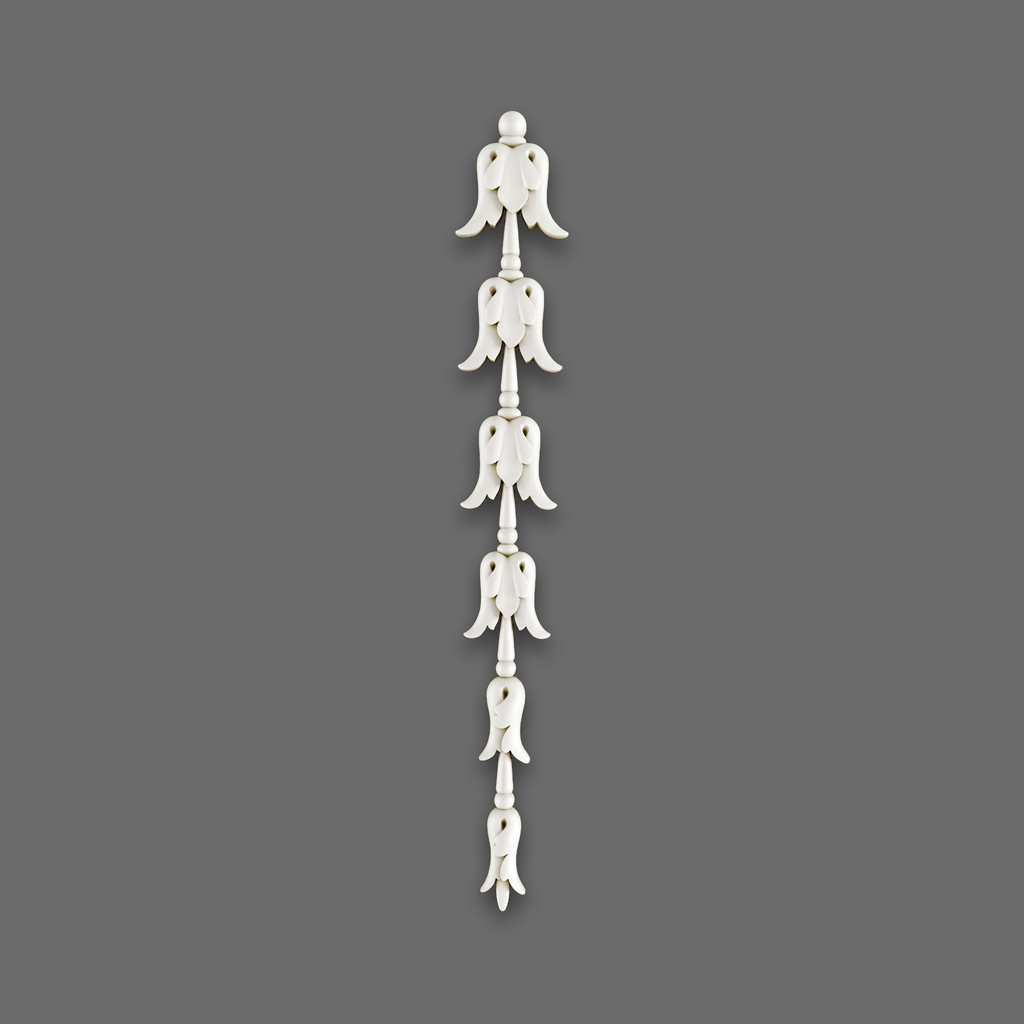NPU-316 Carved Insert Made of polyurethane, it is an elegant vertical composition in the form of a garland of stylized flower buds. Excellent detailing of each element ensures clear relief and expressive decoration.