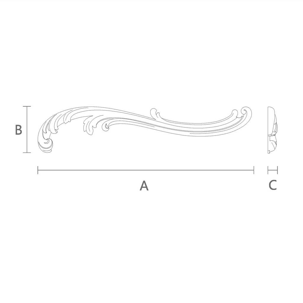The NPU-427R molded decoration is a stretched, slightly curved element resembling a pen stroke or a plant swirl. The shape consists of several smooth "wavy" bands that gradually converge, creating a sense of movement and lightness. This gives the element a special grace and allows it to look good in various places — above door or window openings, at the top of walls, on ceilings, and even on furniture.