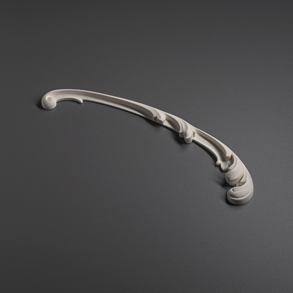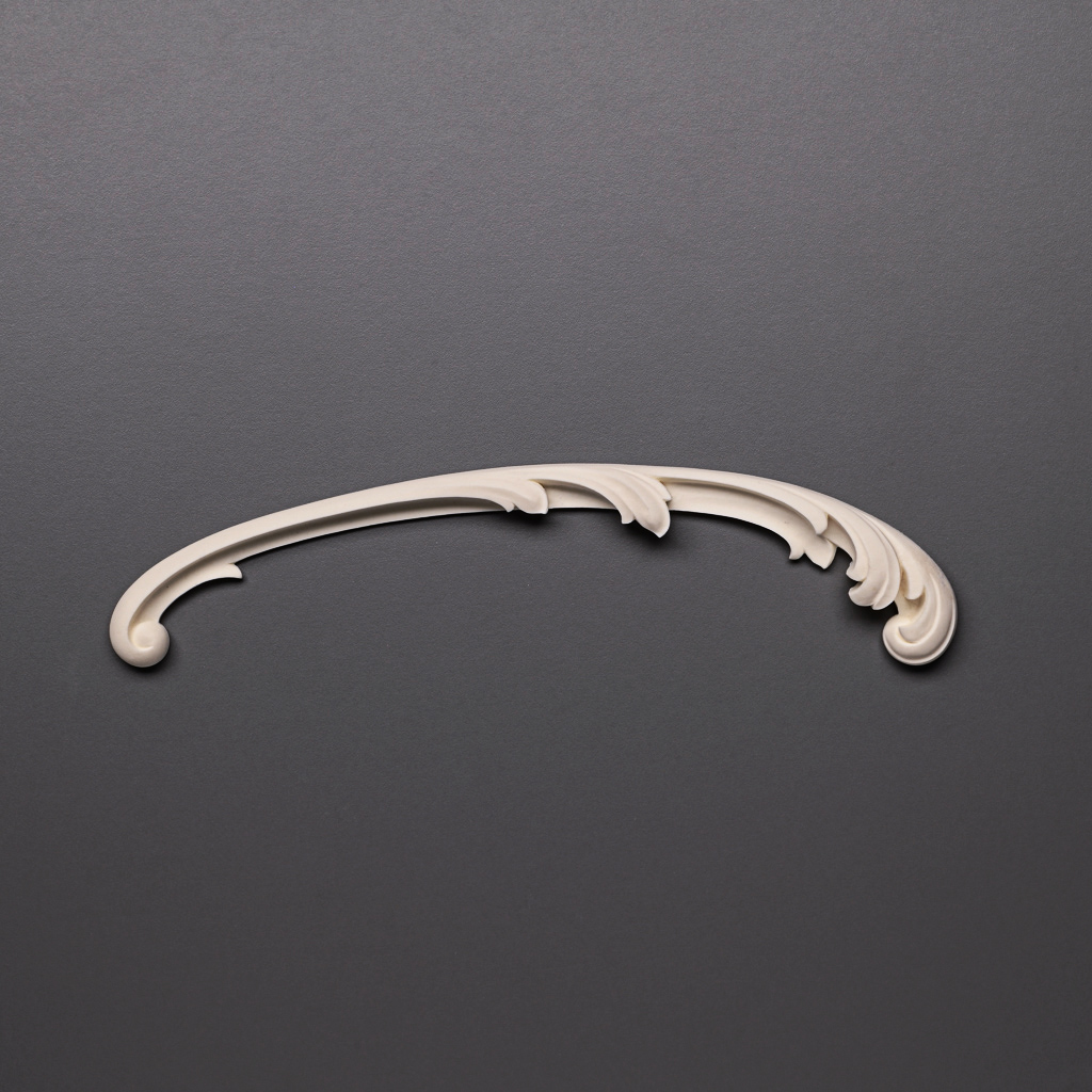 The NPU-429R model attracts attention with its elegant arched silhouette. It resembles a neat scroll with plant motifs, reminiscent of stylized leaf or gentle wave contours. Such a form is not only aesthetically appealing but also practical: it can be mounted on walls, ceilings, furniture, or used as part of facade decoration. Thanks to soft transitions and absence of sharp angles, the NPU-429R molded decoration looks elegant and appropriate in various interiors — from classic to modern minimalism.