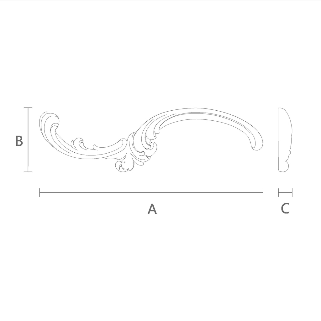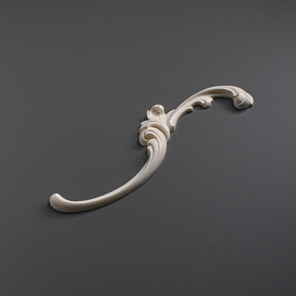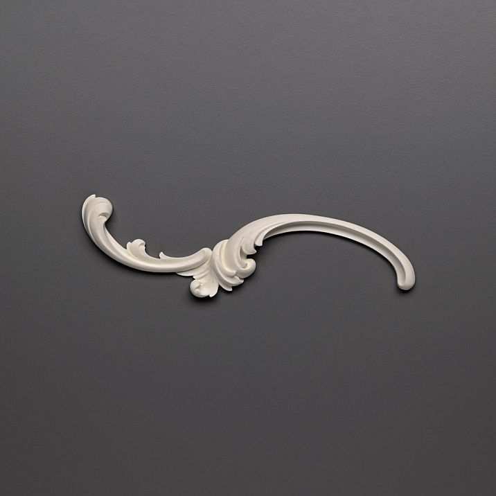 Model NPU-430L attracts attention with its smooth scrolls, which transition from one line to another, forming a whimsical yet harmonious composition. In the center of the decoration, a more substantial part is noticeable, where the scrolls seem to converge, while towards the edges they taper, giving the element lightness and dynamism. Such a shape resembles baroque plant motifs, allowing this decoration to be used in classical and neoclassical interiors, as well as experimenting with styles.