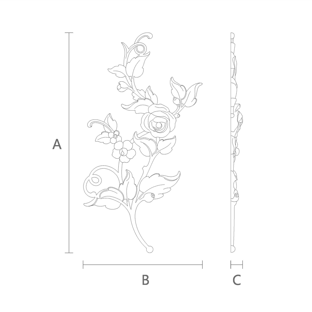 Relief Decoration NPU-467L is an overlay based on a smooth floral ornament. The central element is an elegant rose with intricately detailed petals. From it, leaves and small scrolls gently extend, forming a cohesive composition. Such a shape appears both majestic and unobtrusive, allowing the decoration to fit into any style — from classic to modern.