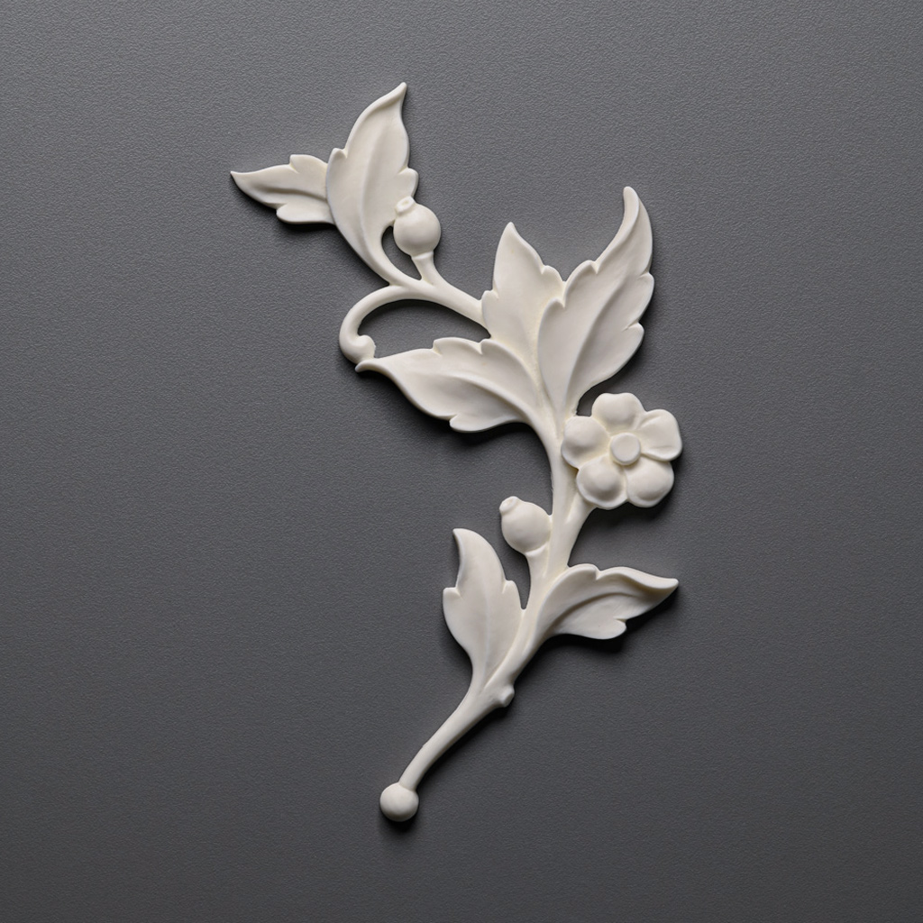 NPU-471R Molded Decoration features clear detailing: every vein on the leaf, every petal of the flower is meticulously crafted. This gives the decoration volume and realism. Such an element will not be lost on the wall — on the contrary, it will become a key detail that captures attention.