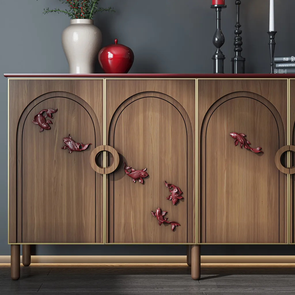 molded decoration made of polyurethane Looks great not only on walls but also on furniture items. Dressers, cabinets, and even doors adorned with decorative fish immediately acquire a unique and distinctive style. Elements with gold or contrasting finishes stand out particularly well, emphasizing the luxury of the interior.