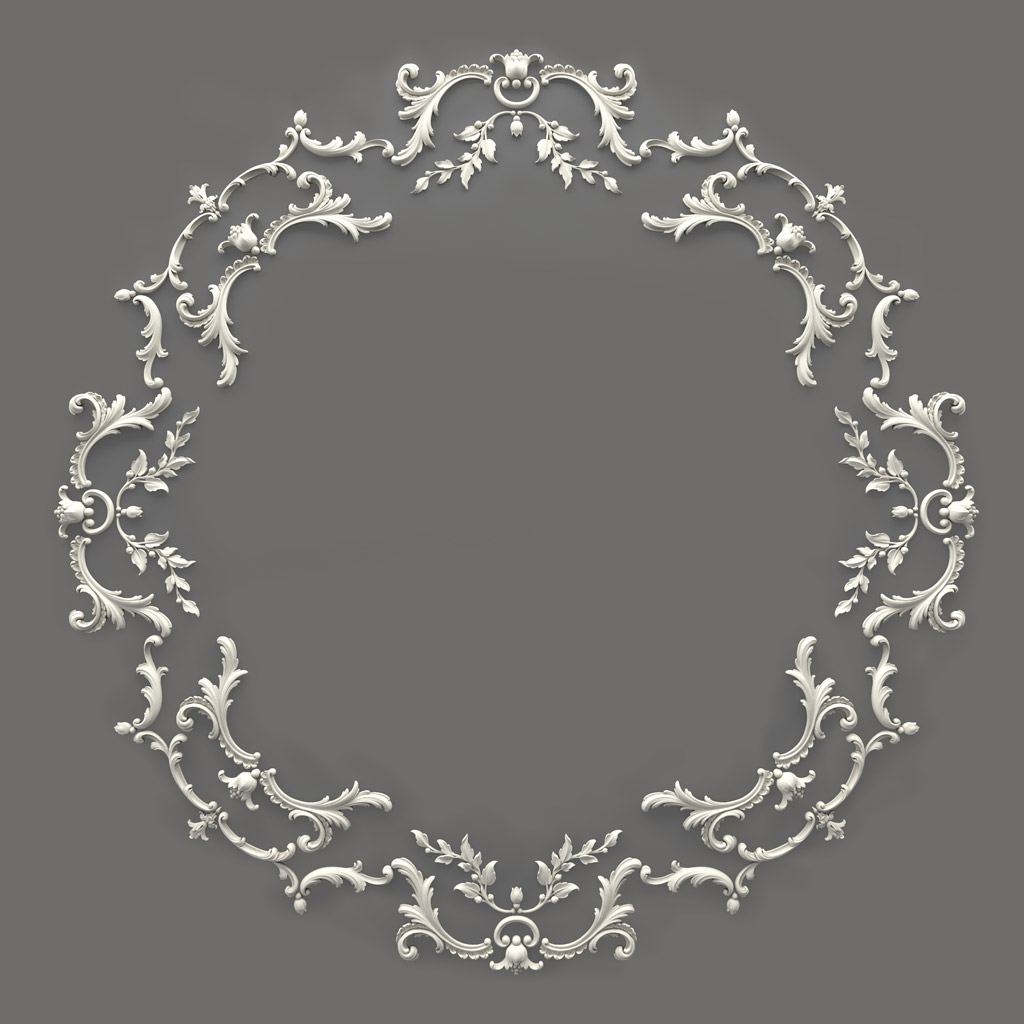 The design concept of CPU-068 is based on principles of 18th-century French Rococo with elements of Neoclassicism, creating a unique synthesis of elegance and architectural formality. The oval composition is formed by a system of symmetrical scrolls and vegetal motifs, creating a rhythmic structure with a clearly defined central accent.