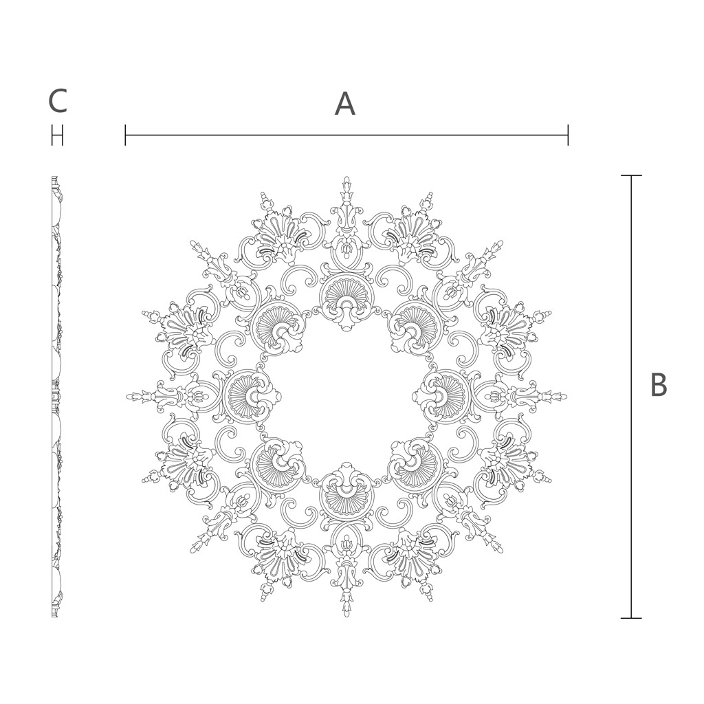 Ceiling Rosette CPU-070 — an exquisite decorative overlay with a delicate floral pattern and high relief detail. This molding decor adds nobility and depth to a space, transforming an ordinary ceiling or wall into a thoughtful composition. The molding appears light and airy, emphasizing the architecture of the room.