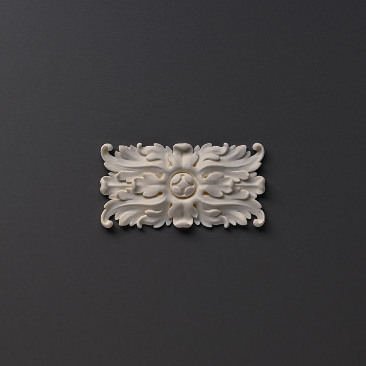 Carved rosette RPU-068 is aesthetically appealing polyurethane decorative element, which adds charm and elegance to details of classic interior. Measuring 115x60x11 mm, this unique product is made of polyurethane – a material prized for its durability, lightness, and ability to reproduce complex shapes and ornaments.