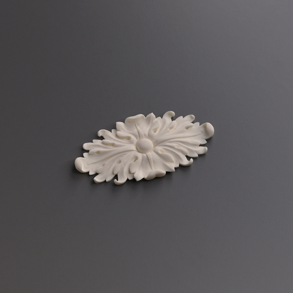 Carved rosette made of polyurethane RPU-069 is a decorative element that represents a symbol of refinement and excellence, necessary for creating classic interior decorWith dimensions of 116x60x11 mm, the product is made of polyurethane — a modern material renowned for its flexibility, durability, and ability to capture the most delicate carving details.