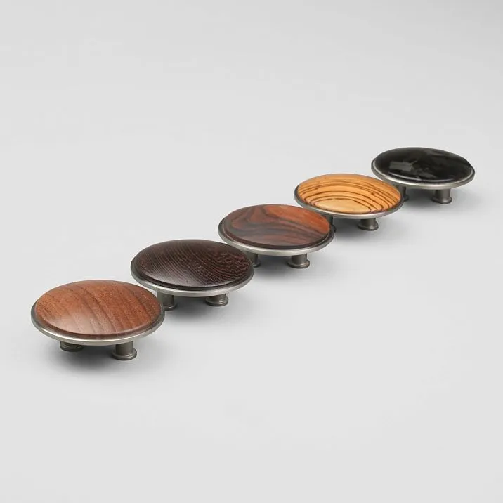 The texture of walnut wood is characterized by moderate expressiveness and harmony, which is especially evident on large-format hardware. The fibers form smooth waves and swirls, creating a dynamic pattern that does not overload the visual perception of the furniture. On the surface of the 74 mm diameter handle, the pattern is revealed in all its beauty, adding natural warmth without excessive decorativeness. After finishing, the surface acquires a noble semi-matte luster.