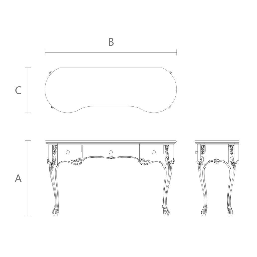 Toilet Table Adele — embodiment of the refined elegance and luxury of French Baroque. The high craftsmanship with which this piece of furniture is made, and its stylistic authenticity to the era of Louis XV, make it a decoration for any interior — whether classic or modern eclectic.
