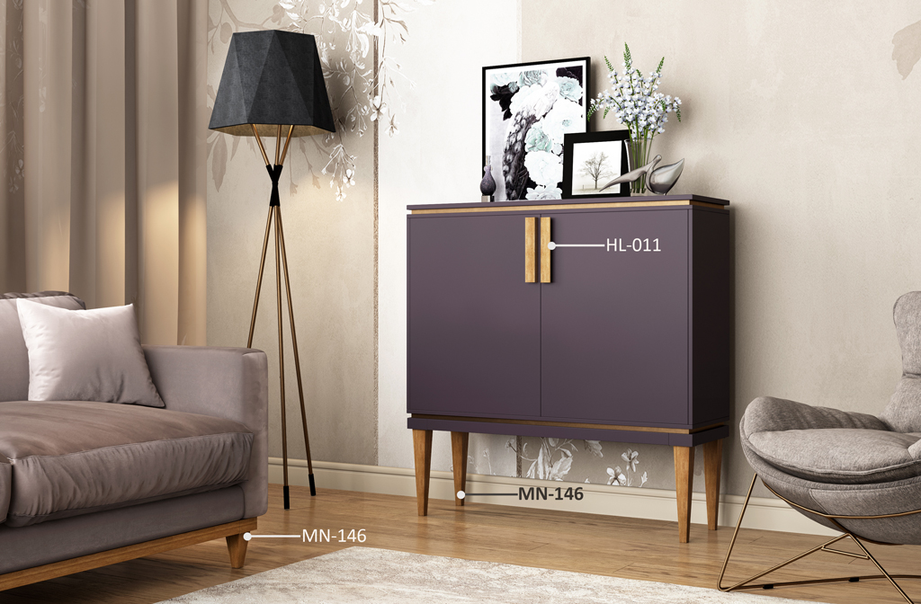 Точеные ножки MN-146 добавляют комоду утонченность и легкость. Их форма и материал подчеркивают изысканность и современность изделия. Эти ножки позволяют комоду "парить" над полом, делая его менее громоздким и более воздушным. Используйте это преимущество, добавляя к декору комнаты легкие шторы или ковры с мягким ворсом.