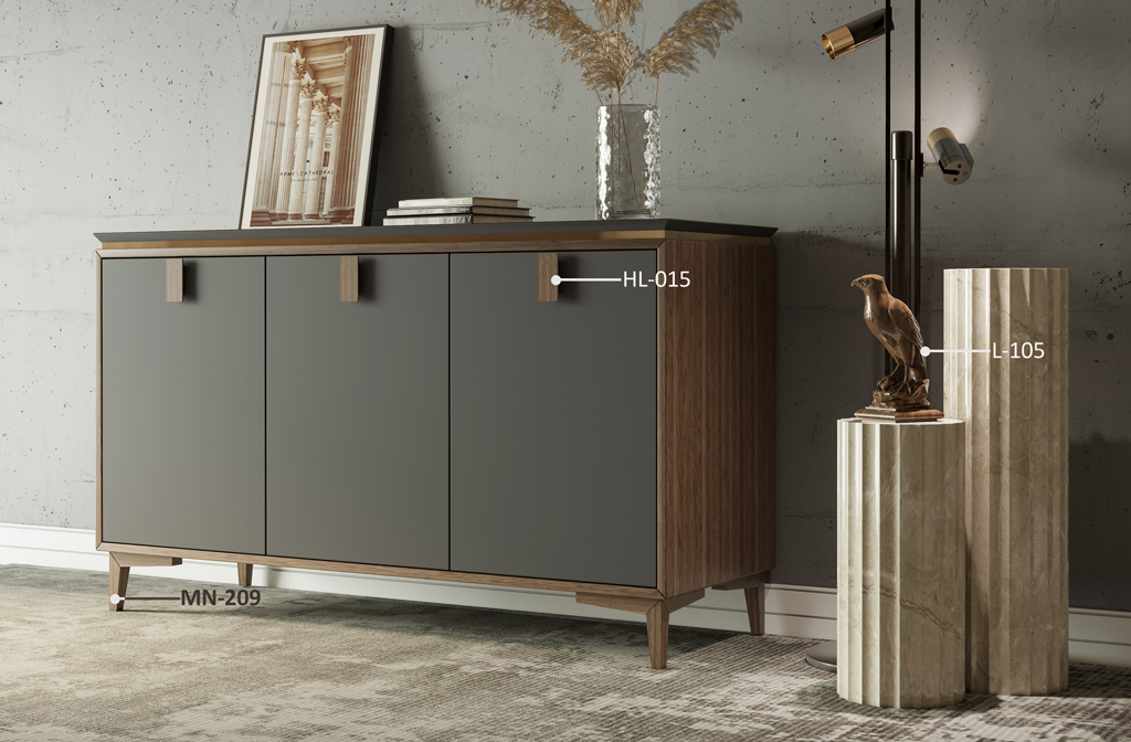 Ножки MN-209 не только добавляют комоду визуальную лёгкость, но и обеспечивают его устойчивость и надёжность. Благодаря своей продуманной конструкции, эти ножки делают комод визуально лёгким, создавая ощущение, что он парит над полом. Это особенно важно для создания современного и стильного интерьера, где каждая деталь играет свою роль. Ножки MN-209 идеально сочетаются с ручкой HL-015, создавая гармоничный и цельный образ, который привлекает внимание и вызывает восхищение.