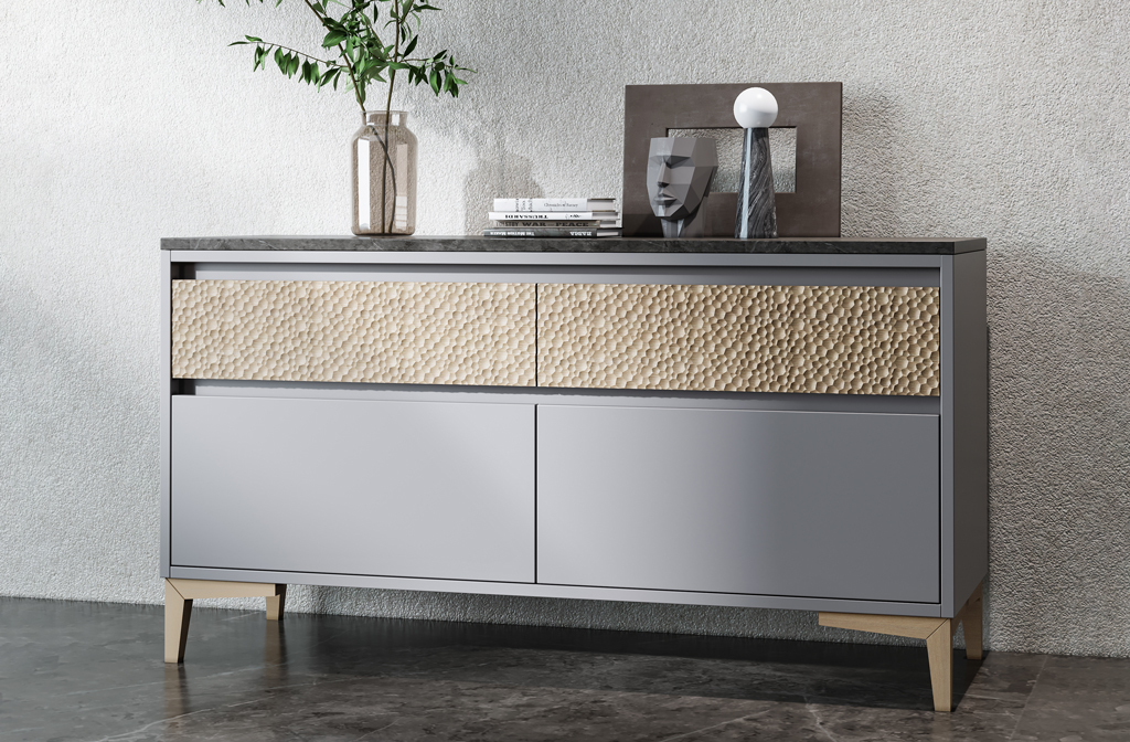 Комод KMD-023 отличается минималистичным дизайном, который подчёркивается использованием качественных материалов и простых, но выразительных декоративных элементов. Рассмотрим основные компоненты, которые делают этот комод уникальным и стильным.