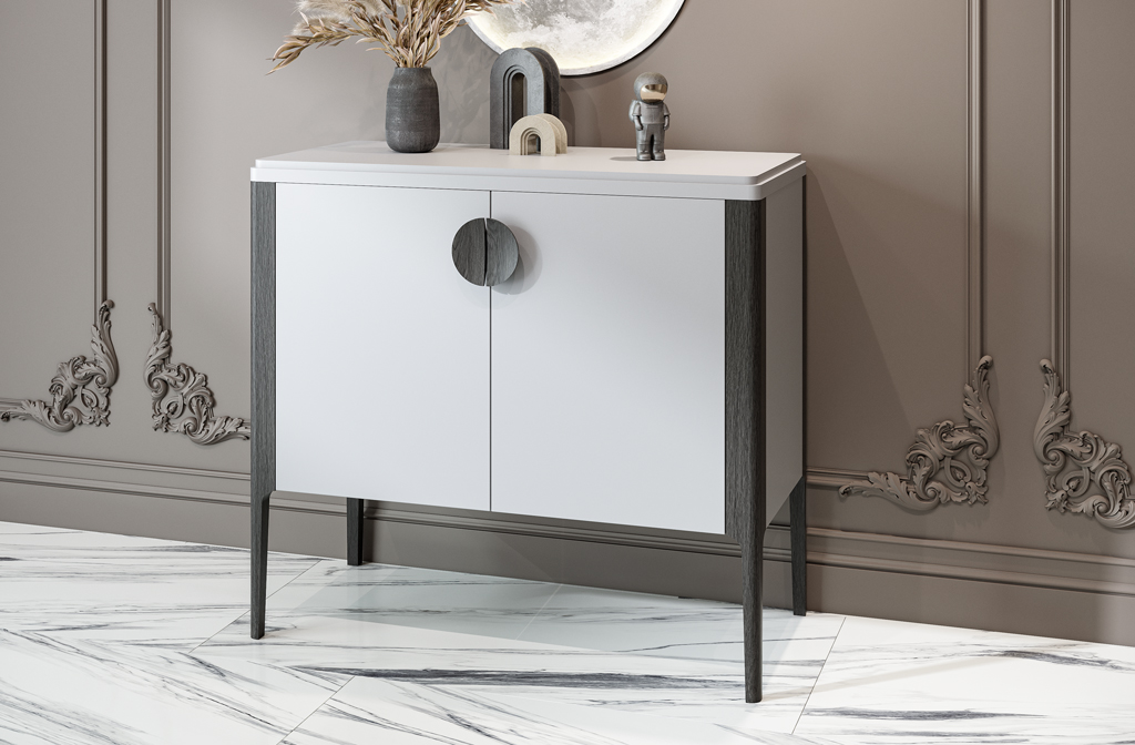 Декорирование комода KMD-027 опирается на минималистичные, но выразительные элементы, которые добавляют изделию индивидуальности и стиля. Рассмотрим основные декоративные акценты, которые делают этот комод настоящим произведением современного искусства:
