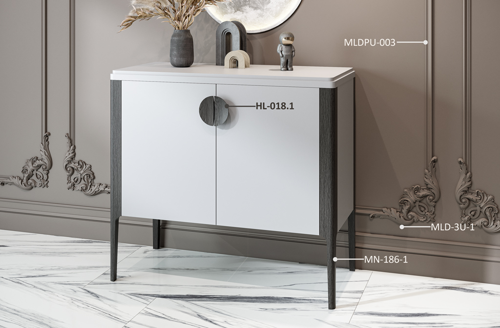 Один из ключевых декоративных элементов, используемых в оформлении комода KMD-027, — это молдинг MLDPU-003. Этот элемент отличается простотой и элегантностью, что идеально соответствует современным тенденциям в дизайне мебели. Молдинг добавляет комоду глубину и визуальную текстуру, сохраняя при этом общую легкость и утонченность композиции.