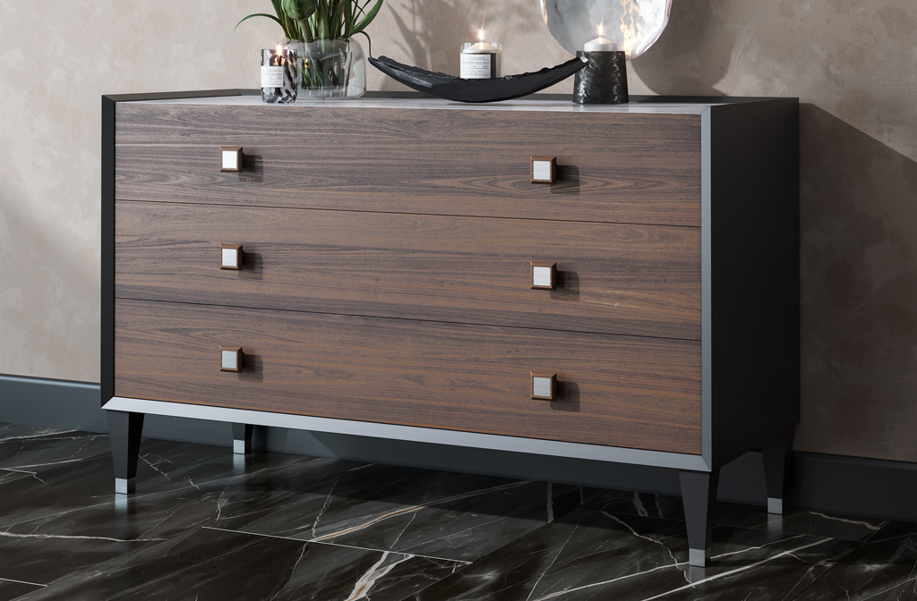 Использование текстурированных материалов. Комбинируйте гладкие поверхности с текстурированными элементами, чтобы добавить комоду визуальную глубину и интерес. Например, используйте молдинги для создания рельефных узоров на фасадах.