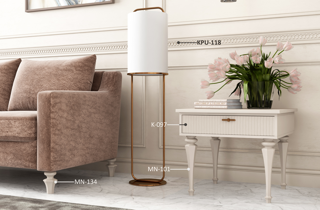 Ножки MN-101 и MN-134 обеспечивают тумбе необходимую устойчивость и при этом придают ей визуальную лёгкость. Их изящная форма подчёркивает утончённость дизайна и делает тумбу центром внимания в любой комнате. Эти ножки идеально дополняют общую концепцию тумбы, создавая гармоничный и завершённый образ, который привлекает внимание и вызывает восхищение.