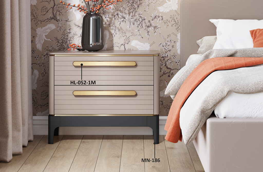 Комбинируйте тумбу с мягкими текстильными элементами, такими как подушки и пледы, чтобы создать уютную и расслабляющую атмосферу. Ручка Duet HL-018.1 и изящные ножки добавят спальне элегантности, а деревянные поверхности тумбы создадут ощущение тепла и комфорта.