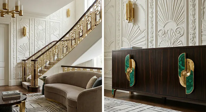 Start with architecture. Art deco is an architectural style, so begin with architectural elements.MoldingsThey create the structure of walls and ceilings.balustersThey define the character of staircases. Moldings divide walls into panels. These elements are the foundation upon which the entire interior is built.