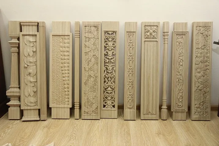 Carving on square balusters gains particular expressiveness due to the contrast between the strict geometry of the basic shape and the plasticity of decorative elements. Shallow relief patterns do not compromise the structural integrity of the item but significantly enrich its visual perception.
