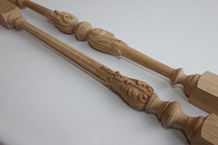 Carved balusters are the pinnacle of carpentry art. Each such baluster is crafted by hand by a master carver who infuses it with a part of their soul. Carving can be relief or through, geometric or floral, simple or incredibly complex. Carved balusters transform a staircase into a work of art capable of becoming a central element of interior design.