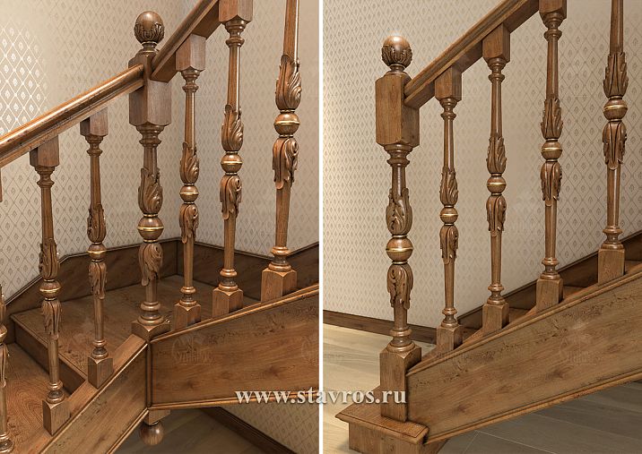 Carving in wood represents the highest form of decorative baluster processing. Master carver creates three-dimensional compositions, transforming a simple wooden blank into a work of art. Carving techniques include relief, through, and sculptural processing.