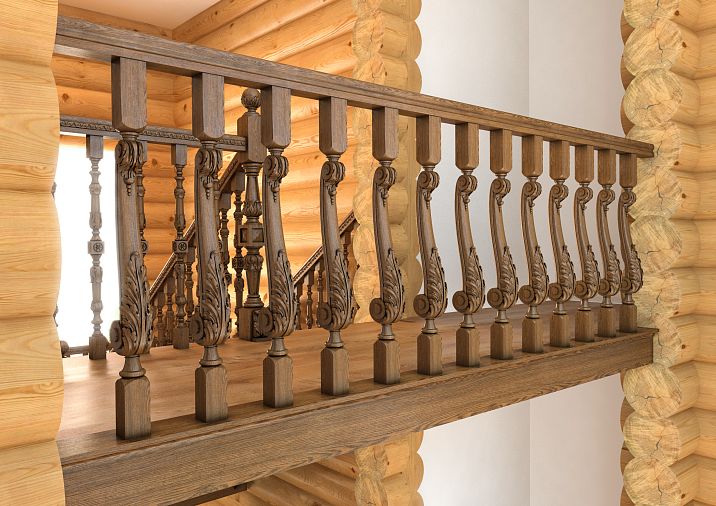 - Wood – a classic choice for country houses and interiors in traditional style. Wooden balustrades bring warmth and coziness, highlighting the natural beauty of textures. Hardwood species are primarily used for their strength and durability. However, wooden balustrades require regular maintenance and protection from moisture.