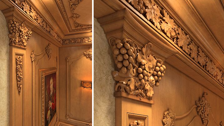 Doorway decoration. Carved elements will emphasize the lines of the doorway, making it a true focal point of the room.