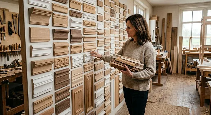 Depends on the style. For classic and neoclassical — profiles with historical cross-sections (ovolo, cavetto, astragal) made of oak or for white enamel. For modern interiors — smooth fascia 20–40 mm. For Scandinavian — narrow white molding made of light wood. There is no universal 'best' profile: there is the right one for a specific task.