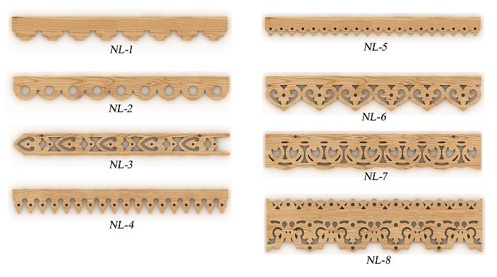 - Classic trim. Rich carving with floral and geometric ornaments. Suitable for traditional wooden houses.