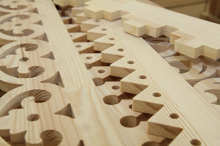 Carved fragments are individual decorative elements, such as floral patterns, geometric shapes, images of birds or animals. These details are created using traditional wood carving techniques and can be either fully recessed or applied.