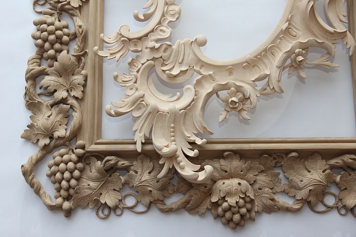 ● Wood carving – skilled cutting of patterns and ornaments on the frame.