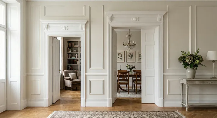An opening is a boundary. A boundary between the hallway and living room, between the bedroom and corridor, between private and shared space. How it's designed determines whether the transition between spaces feels like an architectural event or a construction necessity. In neoclassicism, this question is especially acute: the style is built on system, rhythm, and symmetry, and an unadorned opening in a neoclassical interior looks like a missing word in a well-structured text.