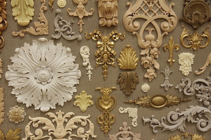 Using carved ornaments and patterns in combination with textile or wall prints allows you to create a unique look for the space. For example, Carved Wooden Patterns will beautifully complement an interior with classic-style wallpaper.