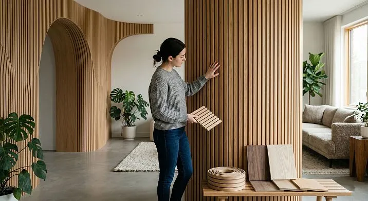 Flexible decorative slats change character under different lighting. Make the final decision on material and profile with a test sample under the actual room light—not just under store ceiling lighting.