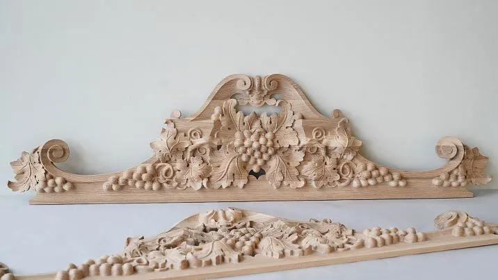 Decorative stickers made of wood or fabric allow you to quickly transform a wall, creating an interesting pattern or ornament. - Carved elements and ornaments.