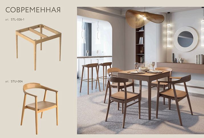 ○ Upholstery can be made of eco-leather, textile, or left uncovered to highlight the natural texture of materials.